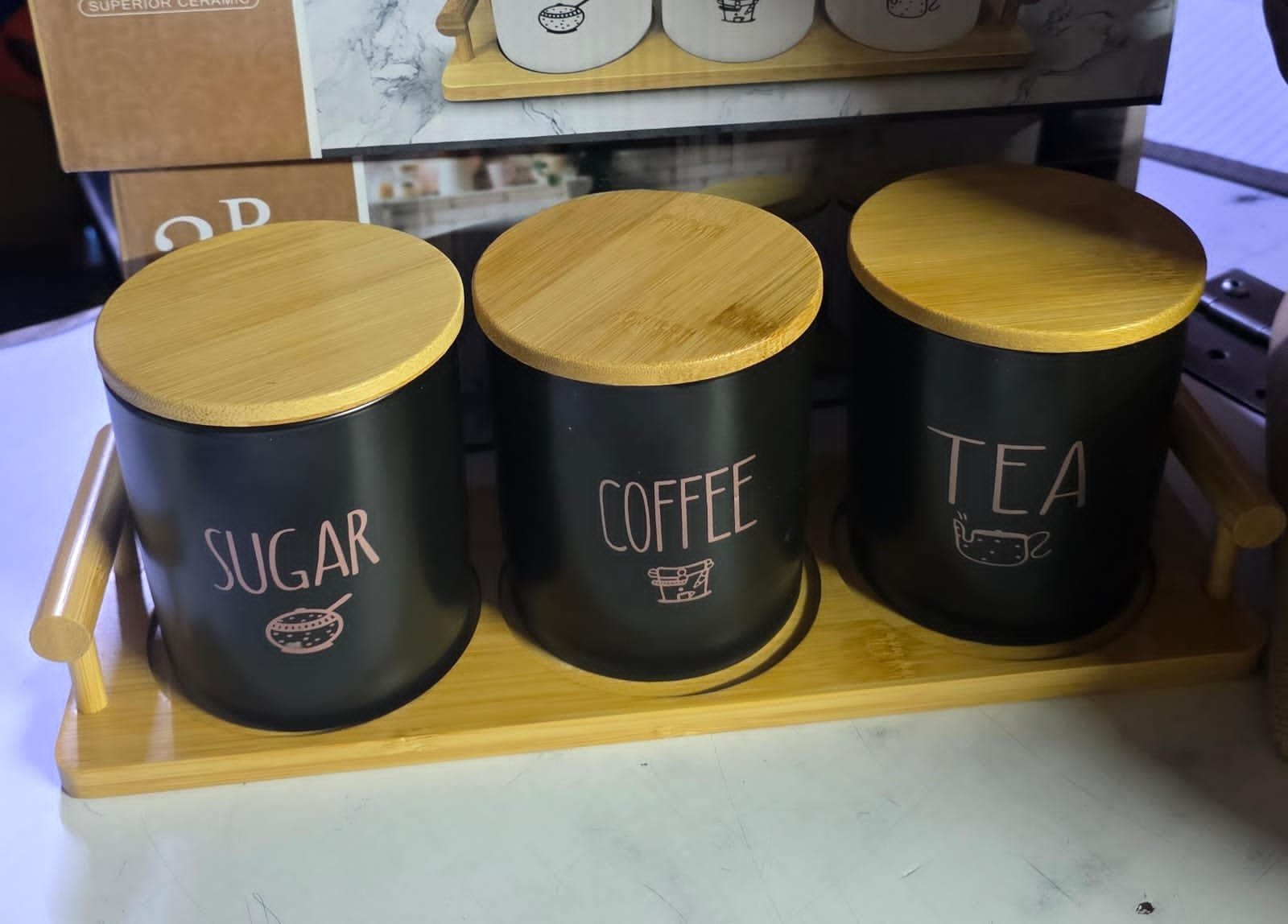 3 pcs set 800 ml canister ceramic with bamboo stand *black only*