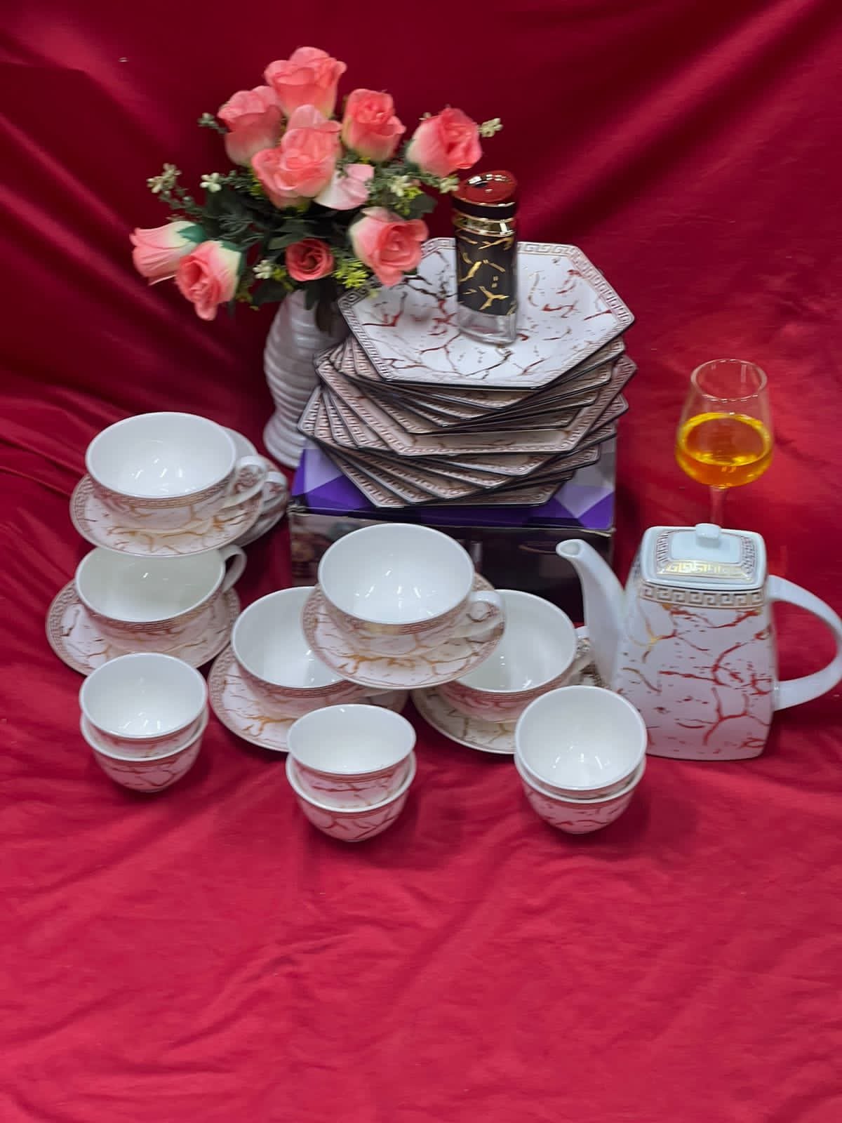 31 PCs Versace dinner set 6 cups (250 mls) 6 saucers 6 soup cup (120 mls) 6 side plates 6 plates 1 kettle (1.2 liters)