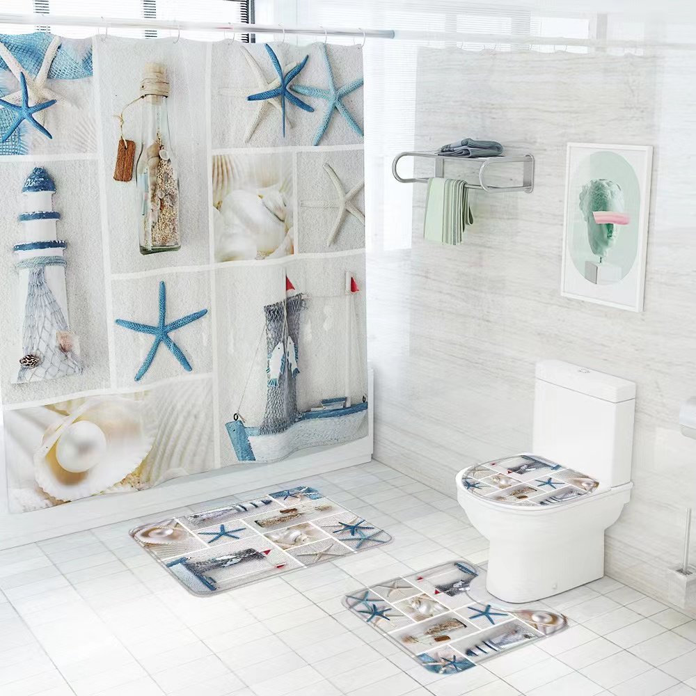 *4 Pcs Bathroom set Consisting of : ✓3Pcs bathroom mat set. ✓180*180cm Polyester shower curtain.
