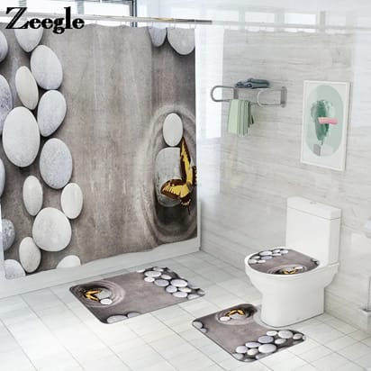 🔅3Pcs bathroom mat set. 🔅 Size: 200x200cm 🔅 Polyester shower curtain. 🔅 Available in different prints