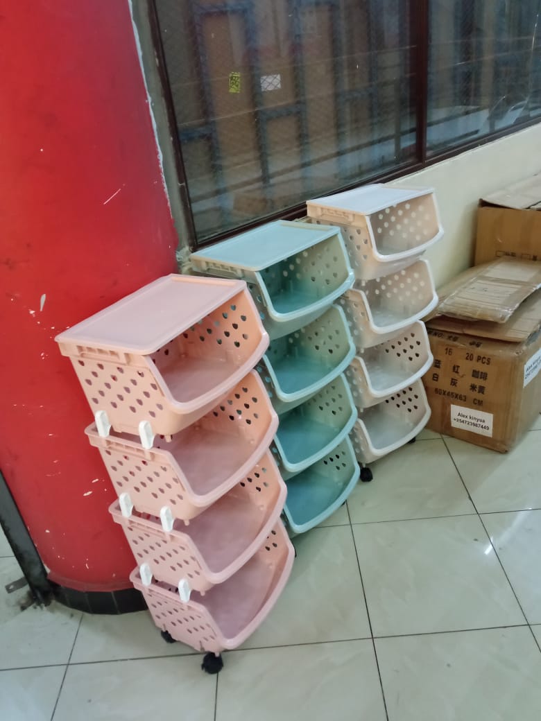 The 4-tier vegetable rack with lid and wheels is a versatile storage solution for your fresh produce. With its four spacious tiers, it provides ample space to organize and display your vegetables. The rack comes with a convenient lid to keep your produce fresh and protected, and it is equipped with wheels for easy mobility. Its sturdy construction ensures durability, while its sleek design adds a touch of elegance to your kitchen or pantry.