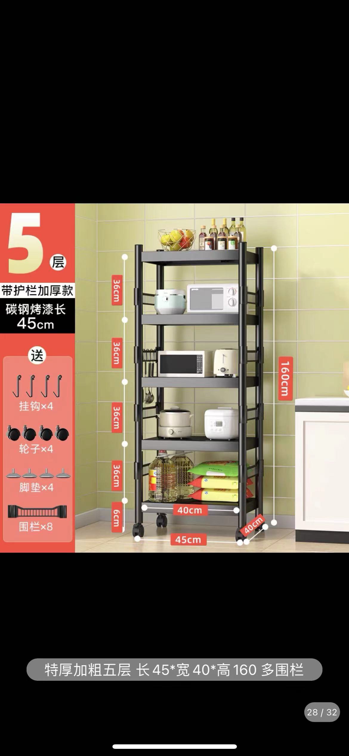 5Layer kitchen shelf ⭐Multi layer storage rack ⭐Microwave oven ⭐Pan rack 🌟Colour :Black ⭐Size:45*60*160cm