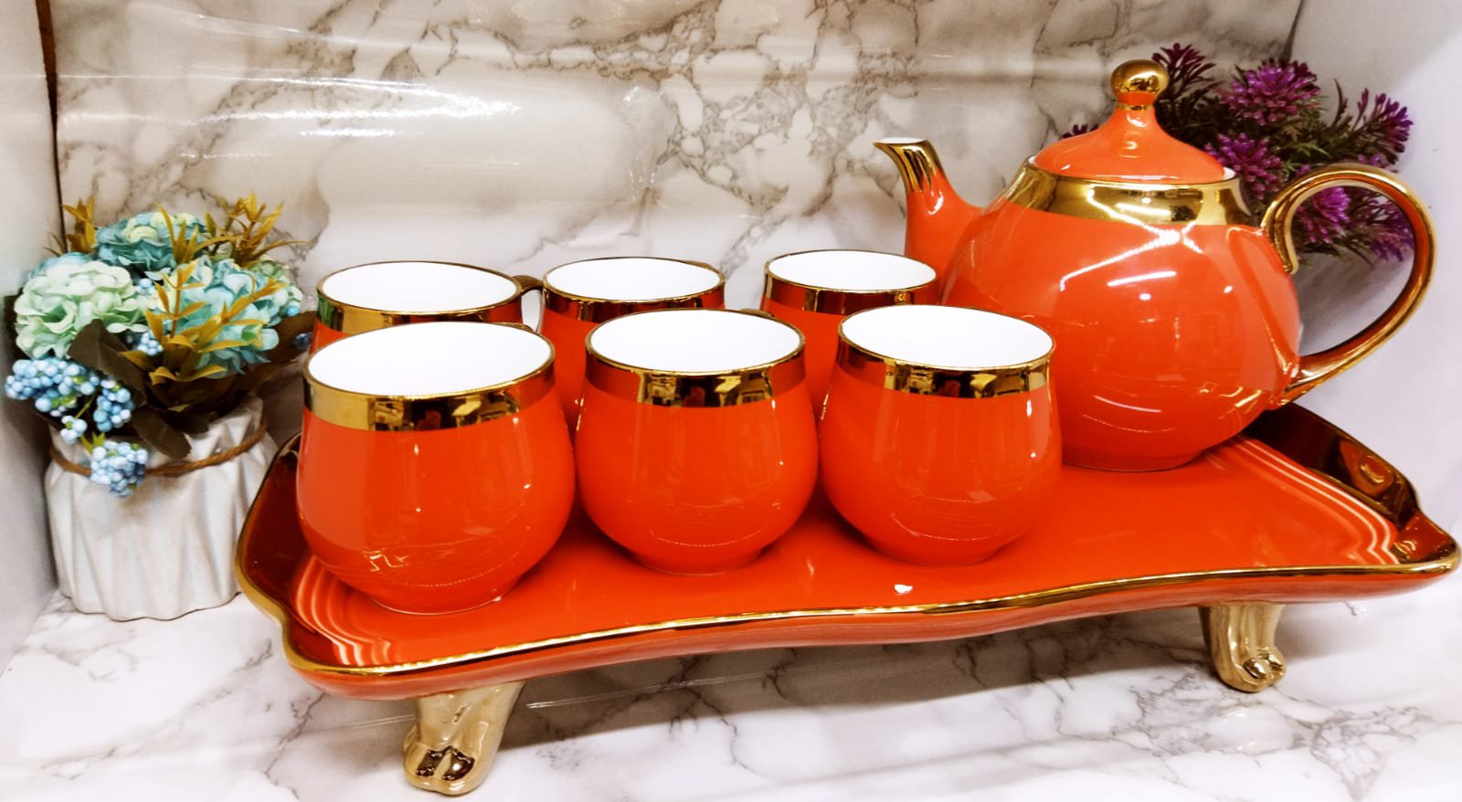 8pcs Tea set with 6cups ,1 kettle and 1 tray