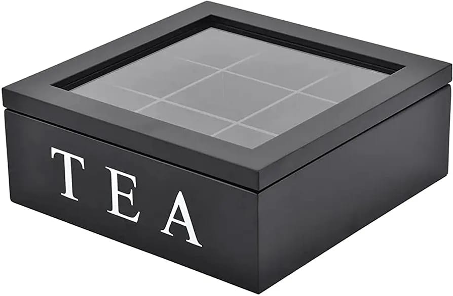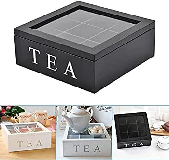 🔅Storage box with visible lid: stylish retro-style tea box, external transparent skylight, 9 grid design, easy to sort and tidy. Make your tea and dried goods fresher.