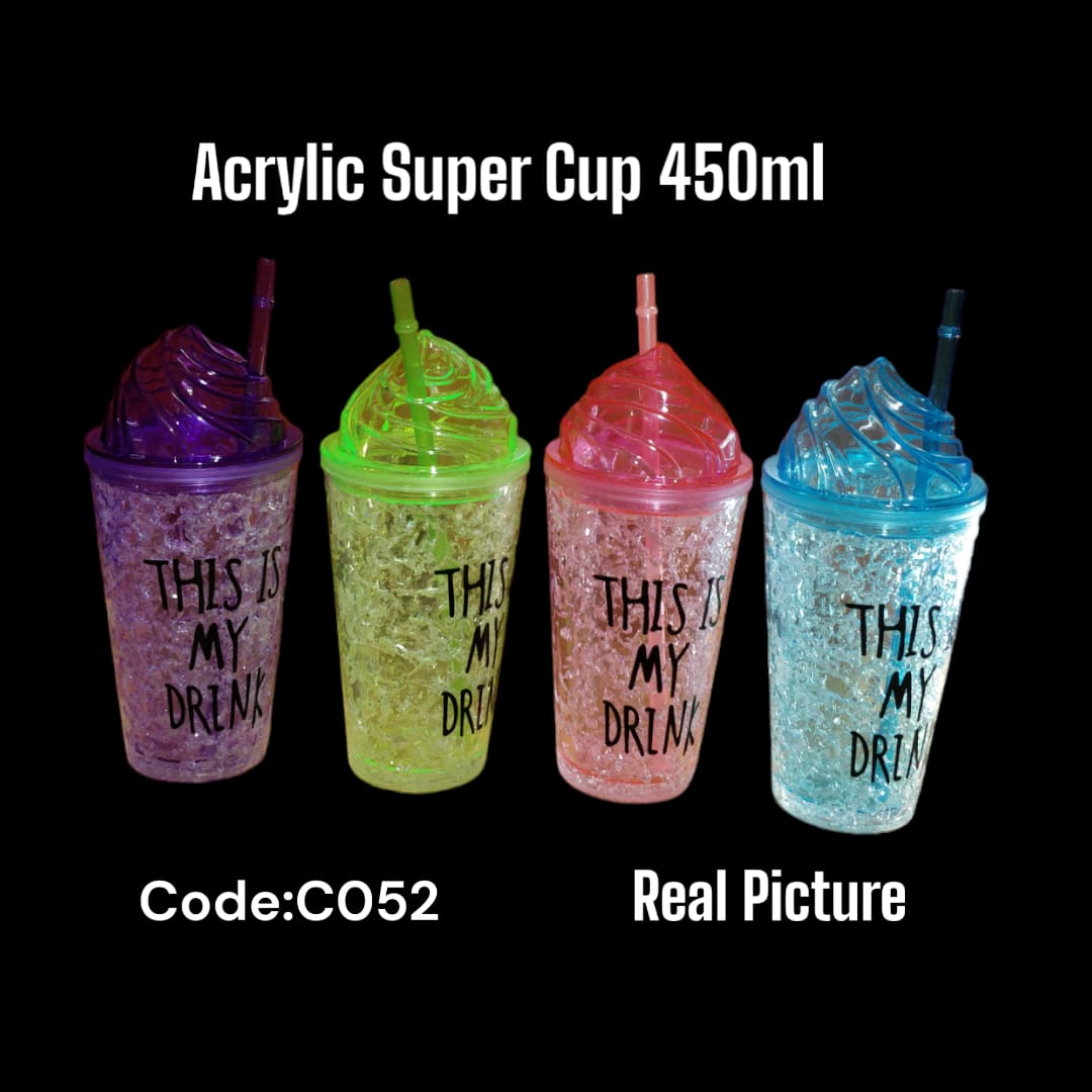 Acrylic Super Cup with Straw 450ml at Ksh 1500/= Per Piece.