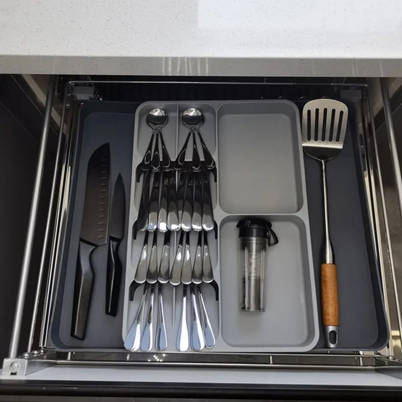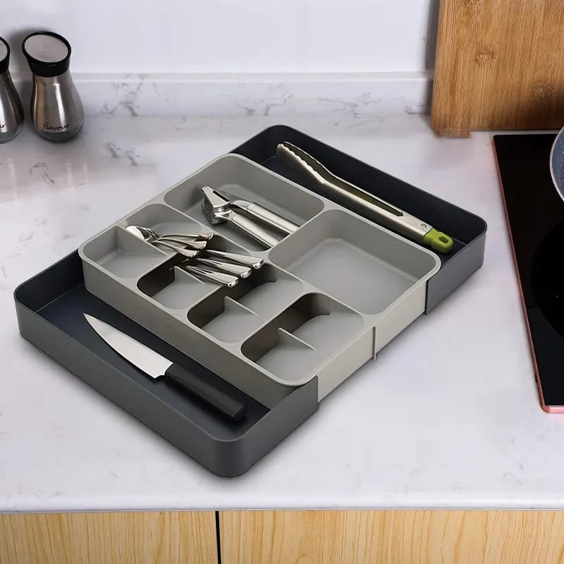 Expandable – The two halves of the tray can be finely adjusted to fit a variety of drawer sizes from 31 cm to 56 cm and lock securely together once in place.