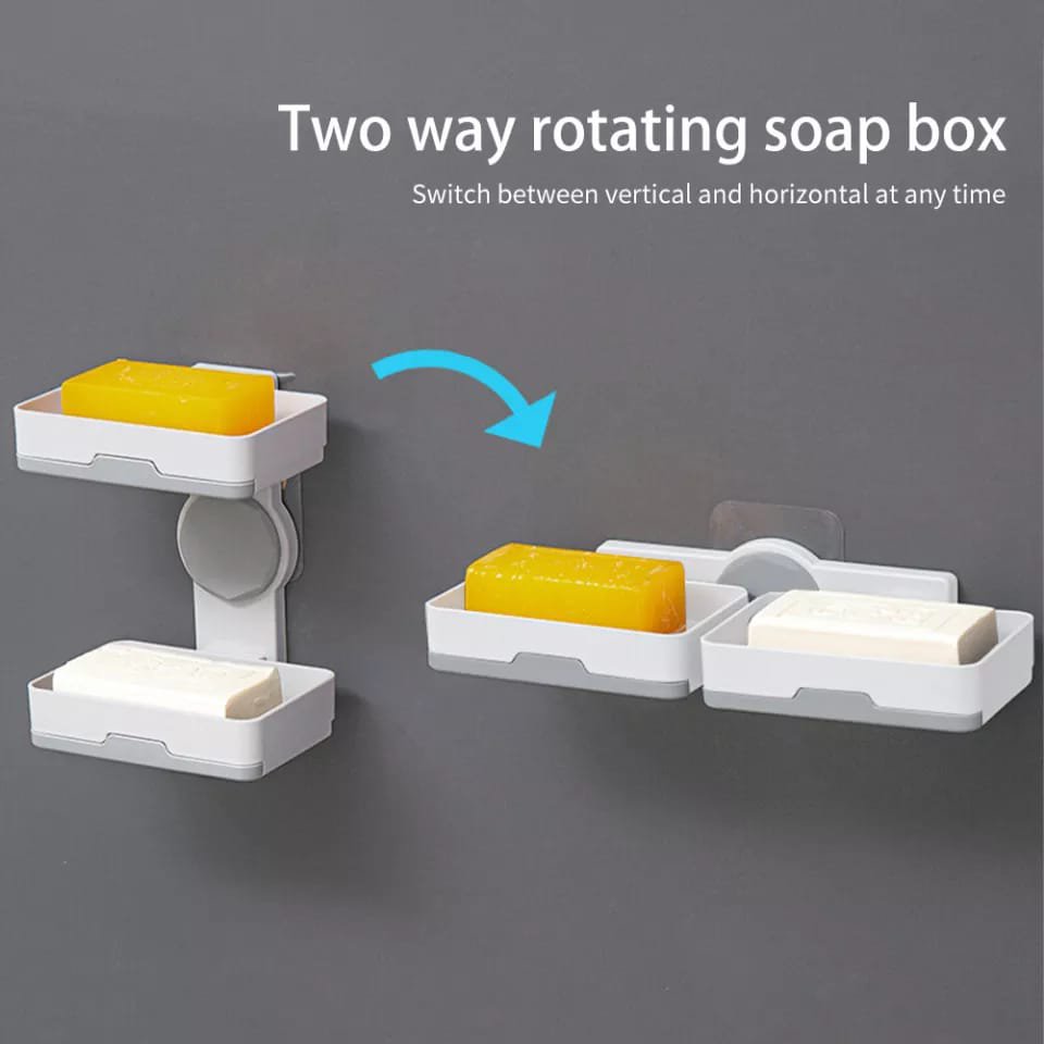 *Double layer rotatable soap dish 350/-* ✅ Super easy installation, comes with seamless sticker ✅ Punch free ✅Material: PVC