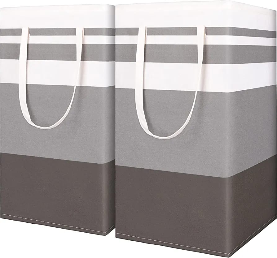 Two long handles, one on each side of the tall hamper, are reinforced with durable tight stitching to prevent tearing. Handles are long enough to hold for easy carrying with one or two hands, even when hamper is full of laundry or other items.