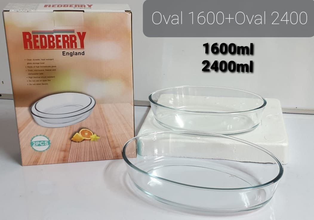 2pcs Oval glass baking / storage tray 1600ml ,2400ml microwave friendly