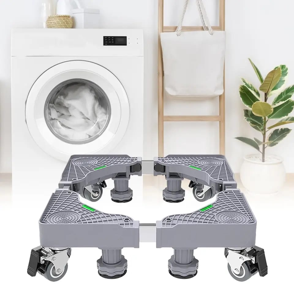 Looking for a durable and versatile appliance stand for your portable washing machine, washer, dryer, refrigerator, or mini-fridge? Our adjustable roller base is the solution! With a push-button lock, brake fixing function, and free tape measure included, it’s effortless to assemble, move and clean. The roller base elevates appliances up to 5.2″ from the floor, reducing humidity and noise, while black anti-vibration rubber pads stabilize the washer and minimize slipping. Capable of supporting up to 660 lbs, this stand is built to last. Order now for a smoother, quieter laundry experience!
