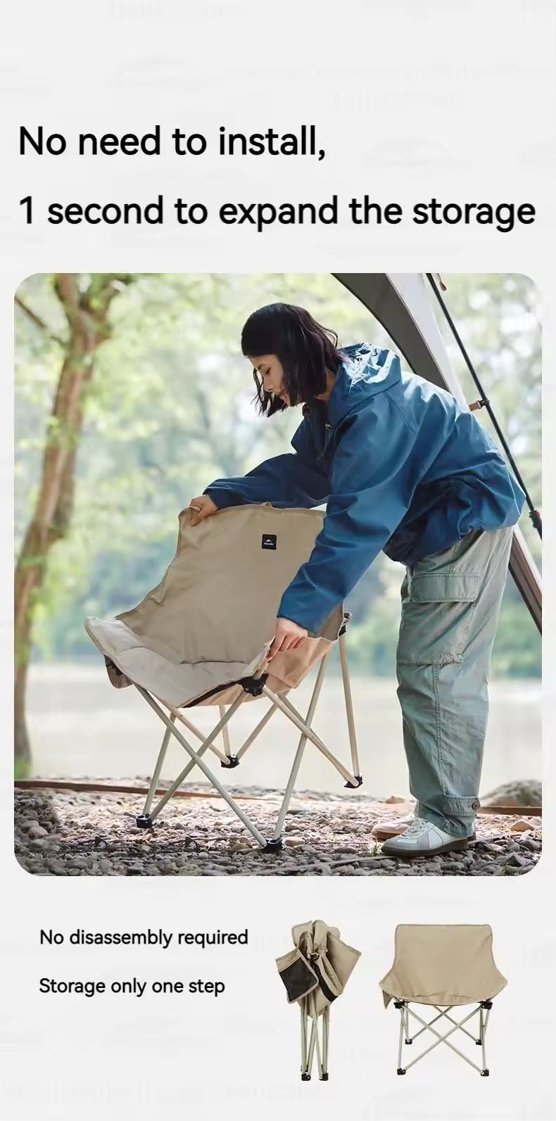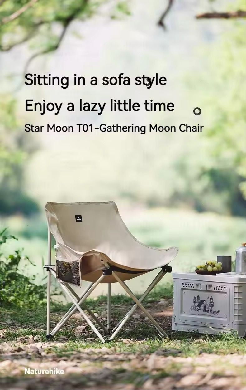 High quality canvas Naturehike Folding Moon Chair. Available in black and khaki color Portable Ultralight for Outdoor Camping Fishing Picnic Travel Bearing 120KG T01 Furniture Chair