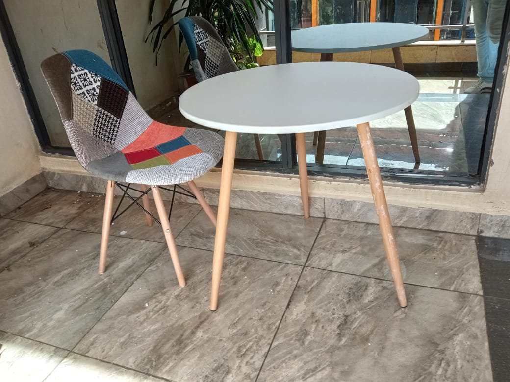Nordic Wooden Round Table Dimensions: 70cm by 70cm Available in White only Patchwork Eames Chair 4699/-