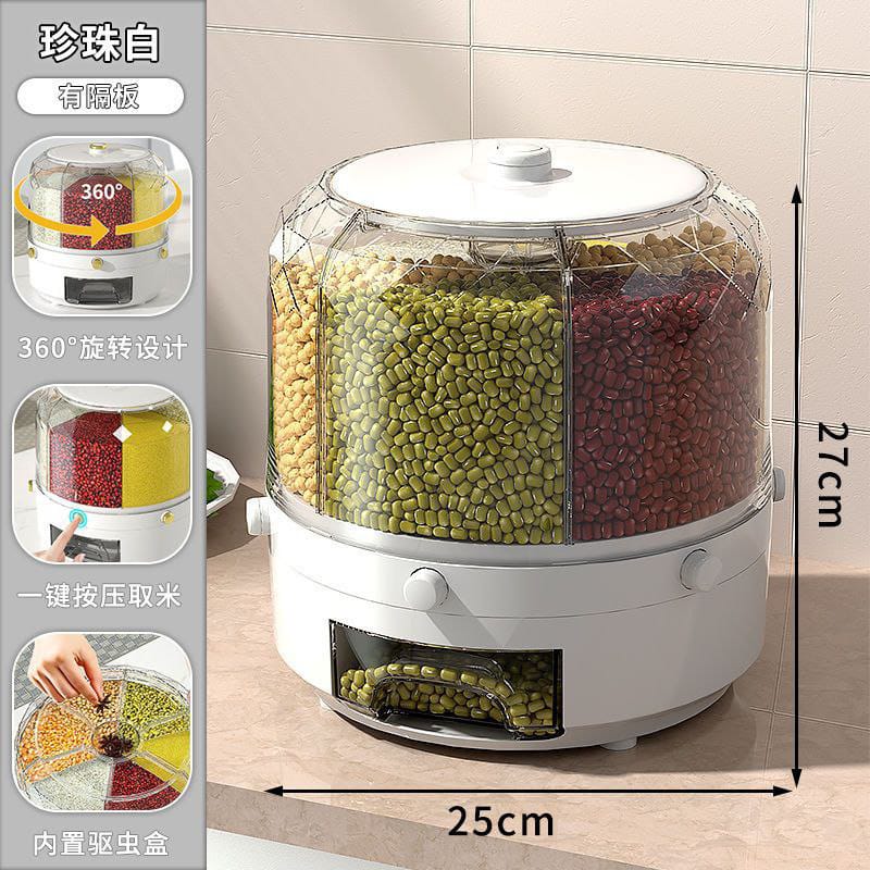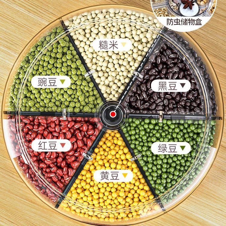 🔅dispenser has 6 grids, the size is Dia.25*25cm, and you can pack 6 different kinds of cereals to meet your daily needs.You can put red beans, soybeans, wheat, rice and other whole grains.