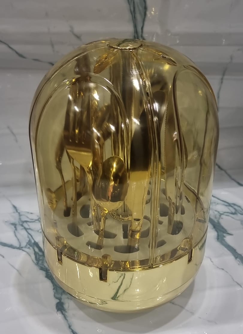 Rotating Luxury Crystal dome shape cover 24pc cutlery set ★ Gold @Ksh 4500 ★ silver @ksh 4300