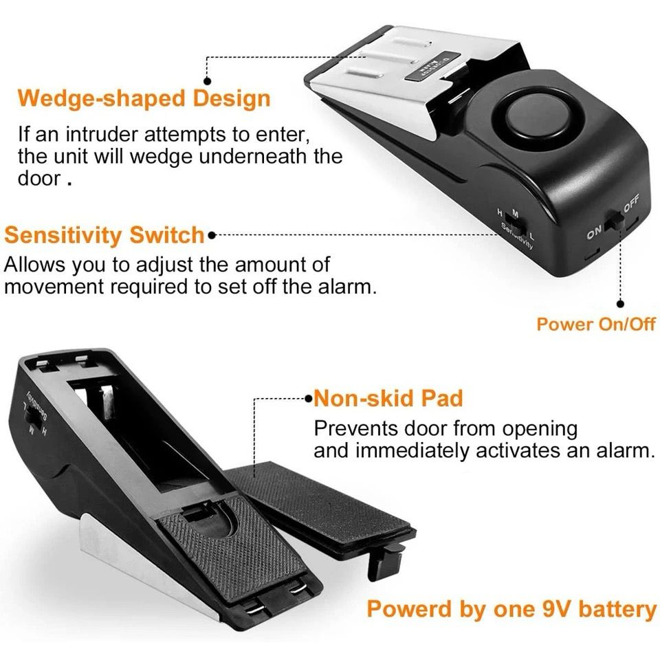 Upgraded Door Stopper Alarm WITH FREE BATTERIES Portable 120db Wedge Security Floor Door Stops Adjustable Sensitivity for Home Dormitory Traveling