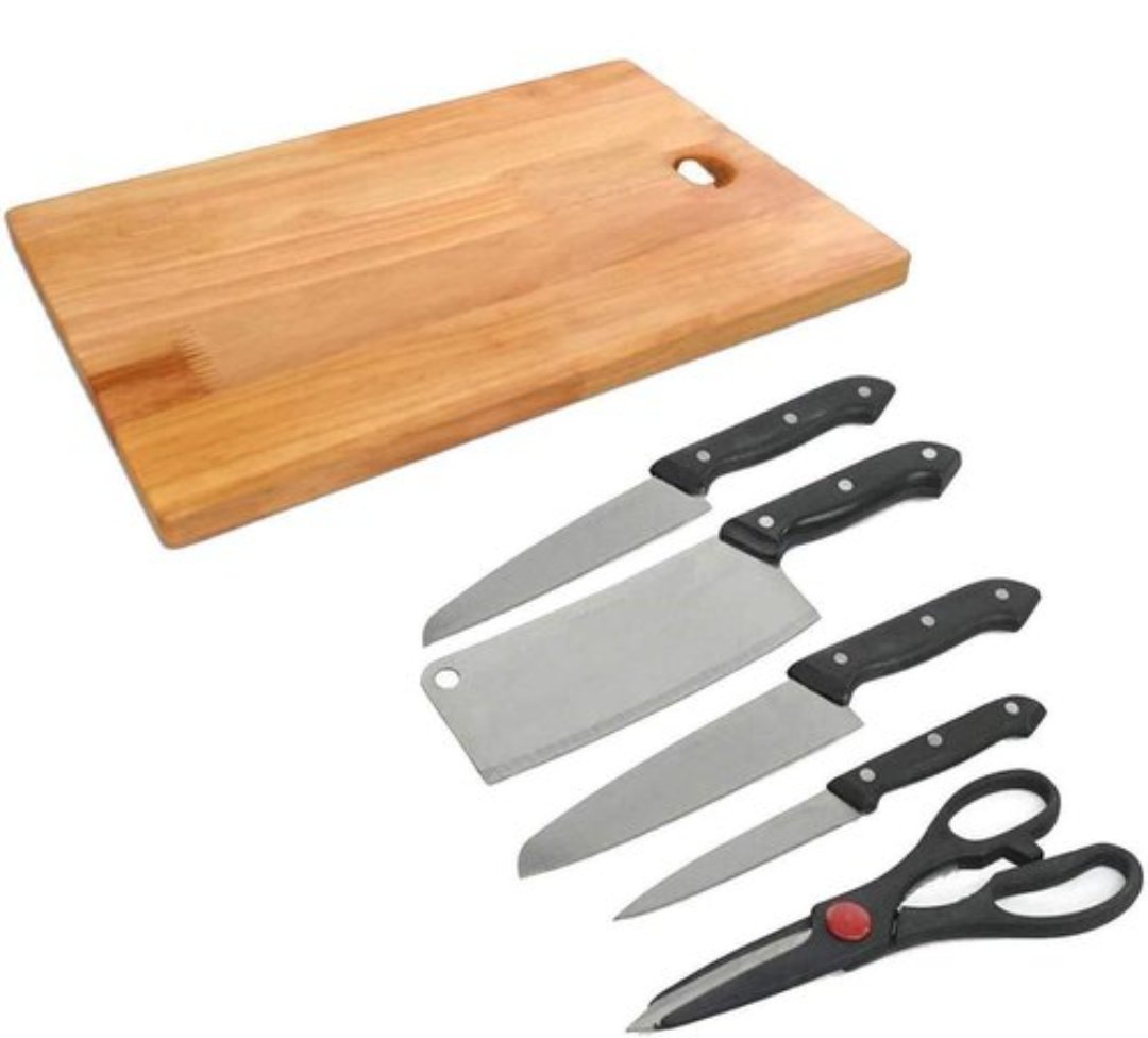 6pcs kitchen utensils set comes with butcher knife,kitchen scissors,3knives and a chopping board