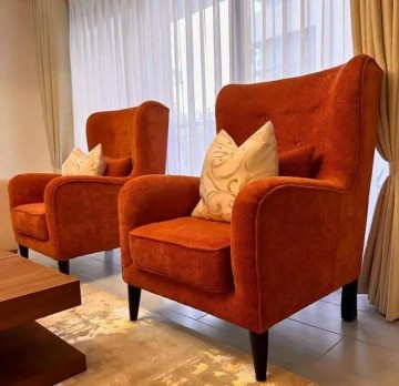 Upholstered in a unique, high-quality fabric, this chair is available in a variety of customizable colour options to suit different interior themes. The high backrest and curved wings offer both ergonomic support and a classic silhouette that complements both modern and traditional spaces.